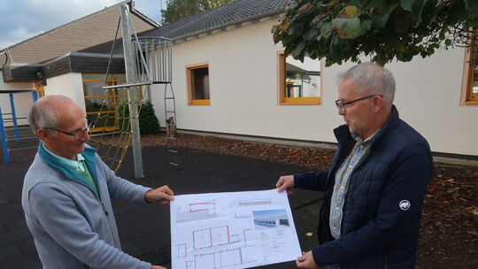 SPD-Fraktionssprecher Klaus Bürschel (links) und Ortsbürgermeister Harald Dohm stellten die Pläne zur Erweiterung der Grundschule vor. Foto: Claudia Geimer Claudia Geimer