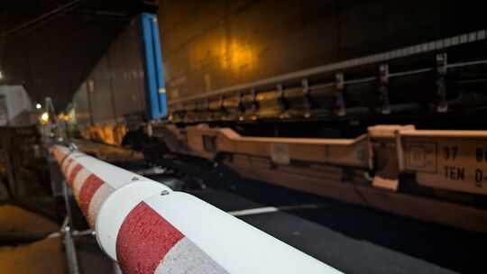 Die Schranken sind am Montagabend zwischen Scheuerfeld und Wallmenroth dauerhaft geschlossen. Ein Güterzug blockiert den Streckenbereich. Daniel-D. Pirker