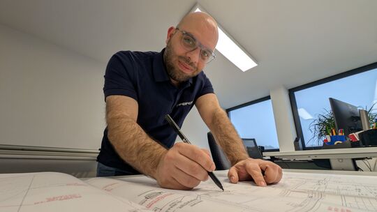 Sulaiman Yacoub an seiner beruflichen Wirkungsstätte, einem Ingeneurbüro im Wallmenrother Gewerbegebiet, wo der Hachenburger als Systemplaner arbeitet. Daniel-D. Pirker