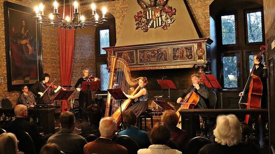 Klangvolles Erlebnis im Rittersaal von Schloss Friedewald: Isabelle Müller spielte ein Solokonzert von Georg Friedrich Händel an der Harfe, begleitet von Streicherinnen und Streichern des Mainzer Kammerorchesters. Foto: Regina Müller Regina Müller