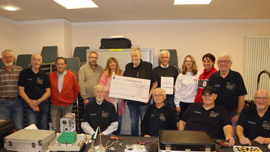 Eine Spende von 1000 Euro übergibt Manfred Ebener (Mitte) an Klaus und Susanne Morgen (4. und 6. von links). Foto: Thomas Leurs Thomas Leurs