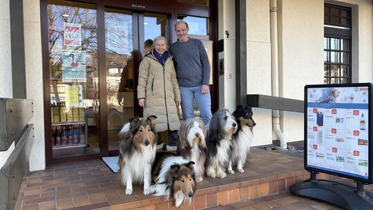 Apotheker Wolfram Kremers gemeinsam mit seiner Ehefrau und seinem Rudel. Die Arbeit in der Apotheke und mit den Hunden kriegt er durch die Unterstützung seiner Frau gemeistert. Sabrina Mewes