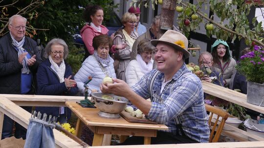 Äpfel schälen und Zuschauer probieren lassen: Das übernahmen die gut gelaunten Mitglieder vom St. Anna Weg in Friesenhagen Gaby Wertebach
