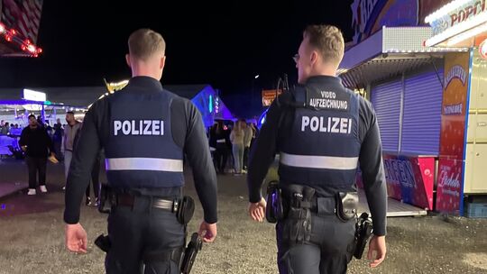 Neben den Mitarbeitern eines vom Veranstalter engagierten Sicherheitsdiensts ist auch die Polizei mit Beamten auf der Mudersbacher Kirmes präsent. Das Archivfoto stammt aus dem Jahr 2023. Annika Stock