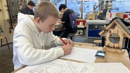 Marc Motorin kam vor drei Jahren aus der Ukraine nach Deutschland. Nach einer Zeit an der Marion-Dönhof-Realschule plus wechselte der 15-Jährige an die BBS. In der Holzwerkstatt widmet er sich seinen Aufgaben mit viel Akribie. Elmar Hering