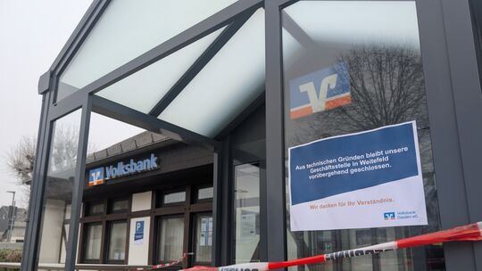 Kunden und Mitarbeiter der Volksbank-Geschäftsstelle in Weitefeld können aufatmen, schreibt die Volksbank Daaden in einer Pressemitteilung. Bereits am 4. Februar hatten sich in der Nacht unbekannte Täter Zugang zur Filiale in der Betzdorfer Straße verschafft und den Geldautomaten mit Gewalt geöffnet.