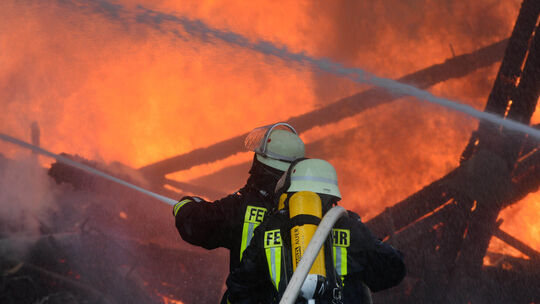 Einen spektakulären Feuerwehreinsatz, ähnlich wie auf diesem Symbolfoto, löste im September 2022 der Brand eines Mehrfamilienhauses in der Verbandsgemeinde Altenkirchen-Flammersfeld aus. Vor dem Landgericht Koblenz läuft derzeit der Prozess gegen einen heute 21-Jährigen. Stefan Thomas. dpa