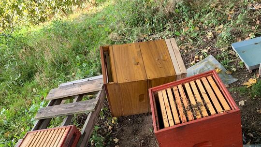 Wut bei den Kindern, den Jugendlichen und dem Team des Altenkirchener Kompa: Die beiden Bienenkästen, die sichtgeschützt auf dem Gelände der Evangelischen Kirche stehen, wurden zwischen dem 2. und 6. Oktober zweifach umgeworfen. Foto: Dominic Pritz/Kompa Dominic Pritz / honorarfrei