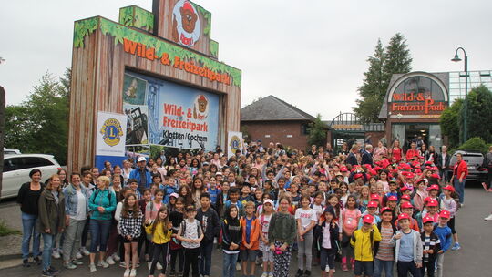 „Klotti-Park, Klotti-Park, Klotti-Park“ – das wiederholte Rufen im Chor in Kinderstimmen stimmt schon einmal an, was den Park vor und nach den Sommerferien erwartet: Insgesamt 1800 Grundschüler aus dem Ahrtal werden den Wild- und Freizeitpark in Klotten besuchen. Am Montagmorgen waren die 312 Kinder der Grundschule Bad Neuenahr an der Reihe. Möglich gemacht hat das der Lions Club Cochem-Mosel.
