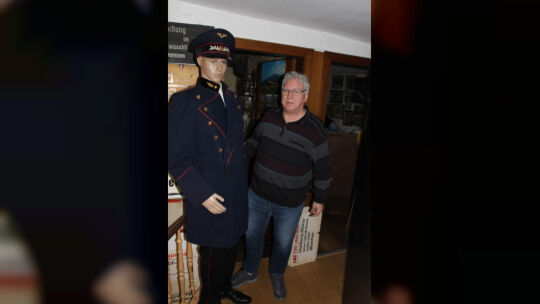 Besonders stolz ist Manfred Simon auf sein wertvollstes Schaustück: eine preußische Eisenbahner-Uniform, 150 Jahre alt. Winfried Simon. RZ