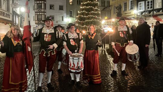 Mit Fackeln und Trommeln ziehen Bürgerwehr und Honoratioren der Stadt vom Markt bis zum Endertplatz. Ulrike Platten-Wirtz