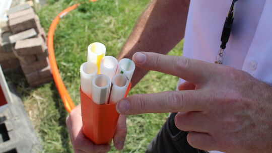 So leer wie hier auf unserem Symbolbild aus Faid sind die Kunststoffrohre des Telekommunikationsunternehmens Deutsche Glasfaser derzeit noch im Umfeld des Burg-Eltz-Wegs in Treis-Karden. Im Ortsteil Karden müssen noch zwei Horizontalspülbohrungen erfolgen, ehe sich daran etwas ändern kann. Foto: David Ditzer David Ditzer