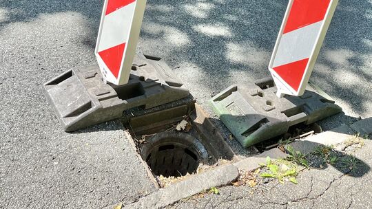 Offener Einlaufschacht nach einem Gullydeckeldiebstahl bei Koblenz im Sommer dieses Jahres. Ein geständiger Täter ist jetzt vom Amtsgericht Cochem verurteilt worden. Rico Rossival