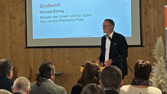 Innenminister Michael Ebling hielt bei Dorfladentag 2025 in Bremm eine kurze Rede. Nina Legler