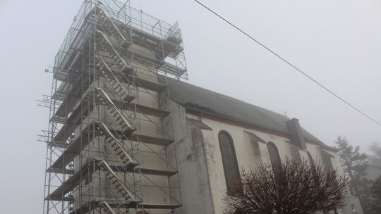 Vor gut einem Monat, am Donnerstag, 9. Oktober, brannte der Turmhelm der Kirche St. Peter und Paul in Peterswald lichterloh. Es wurden keine Menschen verletzt. Seit Anfang November sind Gerüstbauarbeiten am Turm dem Bistum Trier zufolge abgeschlossen.