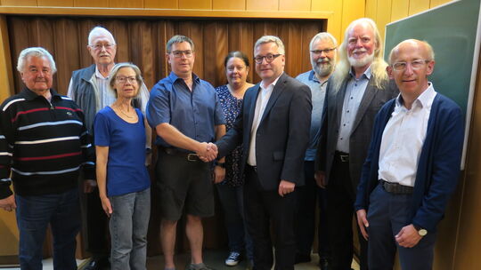 Der Vorstand des Kreismusikverbandes Cochem-Zell mit seinem neuen Vorsitzenden Philipp Thönnes (4. von rechts), dem geschäftsführenden 2. Vorsitzenden Jürgen Pellio (4. von links) und den beiden Ehrenvorsitzenden Günter Bauer und Robert Michels (links). Foto: Heinz Kugel Heinz Kugel