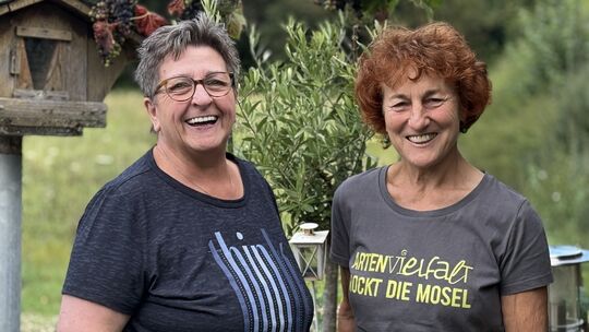 Agnes Hennen (links) vom BUND Cochem-Zell und Andrea Lehmen von der Bürgerinitiative „Erhalt der Kulturlandschaft Zeller Hamm“ erklären die Gründe, die aus ihrer Sicht gegen das Projekt Marina Weingarten in Zell sprechen. Birgit Pielen