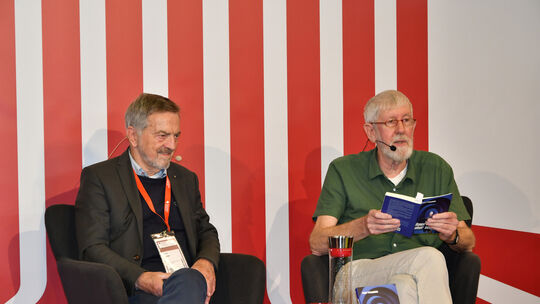 Der Pündericher Autor Peter Friesenhahn (rechts) stellte auf der Frankfurter Buchmesse gemeinsam mit Verleger Arne Houben sein neuestes Werk vor. Oster-Daum Melanie
