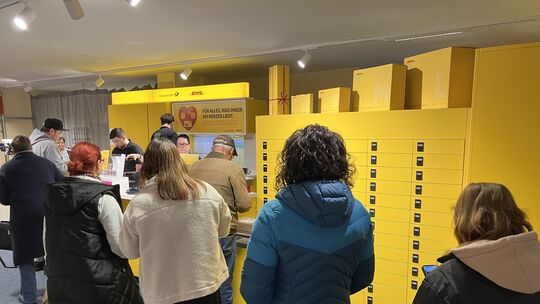 . Lange Schlagen bilden sich vor dem Schalter der neuen Postfiliale in der Cochemer Brückenstraße. Am Montagvormittag möchten etliche Menschen hier Pakete abgeben oder Briefmarken kaufen. Im Laden werden auch Schreibwaren, Büroartikel, Zeitungen und Zeitschriften angeboten.