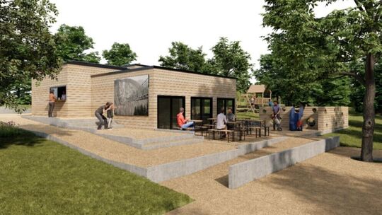 So könnte das neue Brückenbistro auf der Sosberger Seite aussehen. Derzeit ist die Ortsgemeinde auf der Suche nach einem geeigneten Pächter. Grafik Achim Brand Architekten und Ingenieure