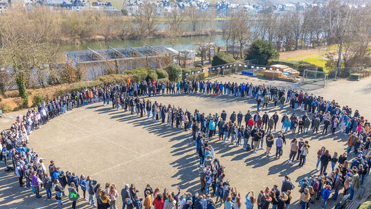 Aufwendige Aktion auf dem Schulhof der IGS soll nicht zuletzt über digitale Kanäle Verbreitung finden - Auch Film entstanden: Stiller Protest: 500 Schüler der IGS Zell setzen Friedenszeichen