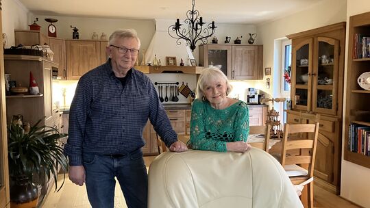 Haben sich gemütlich im Penthouse der Wohnanlage am Kleinbahnhof in Bullay eingerichtet: Udo und Sigrid Theis. Ulrike Platten-Wirtz
