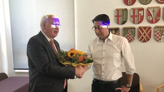 Bürgermeister Karl Heinz Simon (links) gratuliert seinem frisch gewählten Nachfolger Jürgen Hoffmann herzlich zu dessen Wahl. Der Sosberger hat in der Stichwahl seinen Mitbewerber Frank Koch deutlich überholt. Foto: Petra Mix Petra Mix