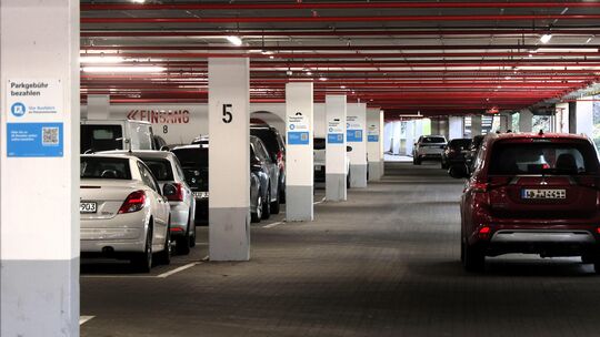 Im Parkhaus der Neuwied Galerie gibt es keine Schranken mehr, stattdessen werden die Kennzeichen automatisch erfasst. Jörg Niebergall