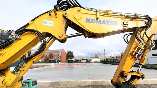 Weil der Untergrund noch aushärten muss, können die Arbeiten an der mobilen Halle erst Anfang November fortgesetzt werden. Jörg Niebergall