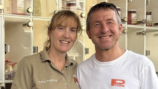 Petra und Jens Preißing vor dem neuen Verkaufsautomaten: Die Inhaber der Bäckerei Preißing setzen auf Tradition genauso wie auf Neuerungen. Rainer Claaßen