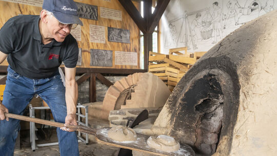 Beim Backtag in der Römerwelt Rheinbrohl gab's frisches Brot aus dem römischen Kuppelbackofen. Heinz-Werner Lamberz