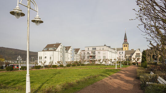 In Bad Hönningen, hier der Rosengarten und im Hintergrund die katholische Pfarrkirche St. Peter und Paul, wird am 22. März 2026 ein neuer Stadtbürgermeister gewählt. Archiv Heinz-Werner Lamberz
