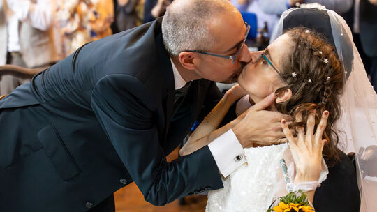 Der Traukuss: Im Sommer 2024 heiratete Kathrin Klapper aus Neuwied ihren Tim auf der Burg Namedy. Kathrin Klapper