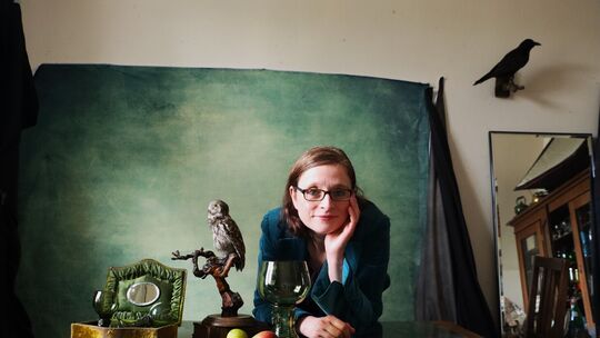 Die Künstlerin Elizabeth Joan Clarke in einem von ihr arrangierten Stillleben. Elizabeth-Joan Clarke