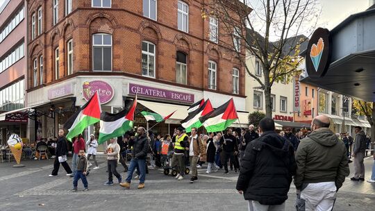 Zwar gibt es in den Medien in Bezug auf den Krieg in Gaza inzwischen vorrangig positive Nachrichten. Aus der Perspektive vieler Palästinenser stellt sich die Lage allerdings anders dar. Grund genug für etwa 100 Demonstranten am Freitag, 24. Oktober, in der Neuwieder Innenstadt darauf hinzuweisen.