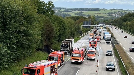 Ein brennender Lkw hat den Verkehr auf der A3 in Richtung Frankfurt kurz vor der Abfahrt Neustadt zum Erliegen gebracht. Um 15.20 Uhr erreichte der Notruf die Leitstelle und wenig später die Einsatzkräfte von Polizei und Feuerwehr.„Als die Feuerwehr Neustadt am Einsatzort ankam, stand das Führerhaus des Lkws komplett in Flammen“, informierte Wehrsprecher Tim Wessel auf Anfrage unserer Zeitung.