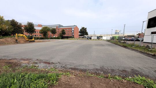 Das Grundstück in der Museumstraße ist eingezäunt, die Bodenplatte vorbereitet. Jörg Niebergall