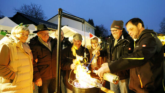 Wer schon immer mal beim Herstellen der Feuerzangenbowle live dabei sein wollte, der wurde beim Harderter Weihnachtsmarkt, beim „Adventsglühweinfest“, bedient. Jörg Niebergall