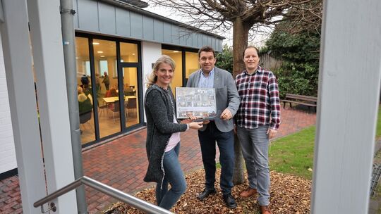 Freude in Harschbach (von links): die Junior-Chefin des Planungsbüros Christina Dittrich, Bauleiter Stefan Gilberg und Bürgermeister Oliver Koch. Jörg Niebergall
