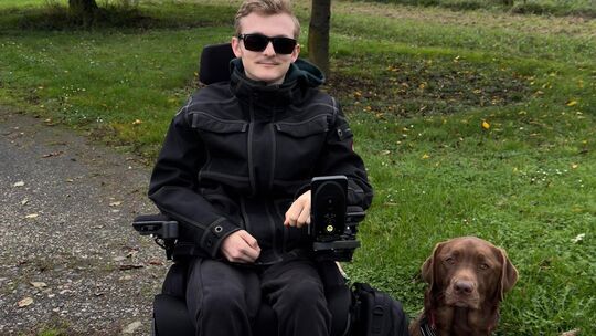 Julian ist auf einen Rollstuhl angewiesen. Seine Labradorhündin Tala soll zur Assistenzhündin ausgebildet werden, um ihm noch besser zu unterstützen. Abu Mansur