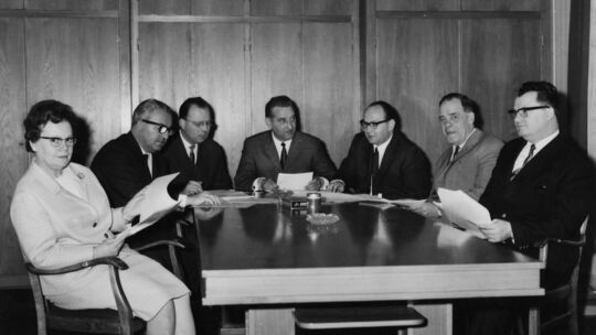 Die Neuwieder Bundestagsabgeordnete Elfriede Seppi (links) nimmt 1967 an einer kommunalpolitischen Gesprächsrunde in Niederbieber-Segendorf teil. Rechts von ihr sitzt der damalige Neuwieder Oberbürgermeister Ludwig Schön. Stadtarchiv Neuwied
