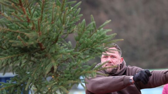 Über die Latte, quer übers Feld und dann noch mit einer Drehung: Die Teilnehmer des Weihnachtsbaumweitwerfens in Waldbreitbach zeigten erneut ihr Können. Rekorde gab es diesmal bei den jungen Teilnehmern.