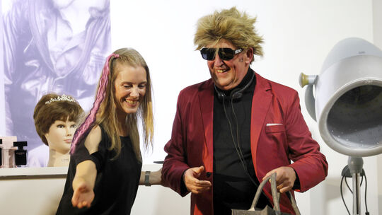 Haarige Zeiten in der Melsbacher Turnhalle: Jessica Barkow-Kutscher und Volker Werner im Friseursalon Jörg Niebergall