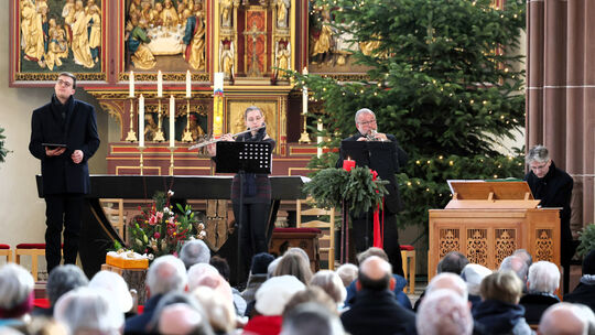 Der bekannte Solist Konstantin Paganetti war am Samstag Teil der letzten Mittagsmusik in der Neuwieder Matthiaskirche in 2025. Unterstützt wurde er von Tabea Rasbach (Flöte), Thomas Maur (Trompete) sowie Jörg Rasbach (Orgel).