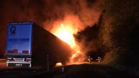 Denn die Zugmaschine des LKW fing sofort Feuer. Beim Eintreffen der ersten Einsatzkräfte stand die Zugmaschine in Vollbrand. Der schwerverletzte Fahrer hatte sich eigenständig befreit. Er wurde in einem Rettungswagen behandelt und anschließend ins Krankenhaus gebracht.