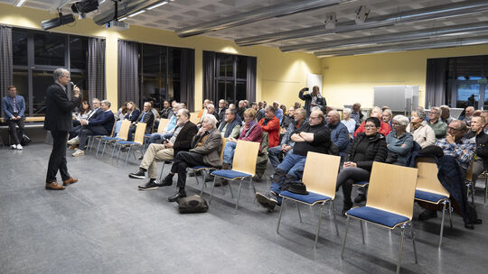 Etwa 50 Zuhörer waren in den Amalie-Raiffeisen-Saal gekommen, um das neue Wärmekonzept kennenzulernen. Die Anmoderation des Vortrags übernahm der Beigeordnete Ralf Seemann. Rainer Claaßen