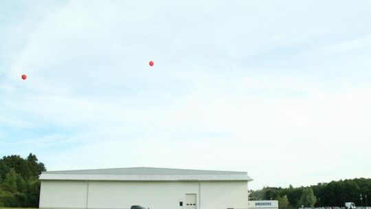 Mit Meßballons markierten die Planer, welche Dimensionen die Logistikhalle von Birkenstock in Vettelschoß haben wird. Foto: Sabine Nitsch