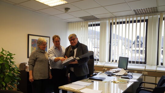 Der Abschied steht bevor: Mit seiner Sekretärin Ellen Engels und dem stellvertretenden Büroleiter Rolf Anhäuser geht Bürgermeister Michael Mahlert (rechts) vor seinem heutigen letzten Arbeitstag aktuelle Vorgänge durch. Ab Dienstag ist sein Büro im Neuwieder Kreishaus.
