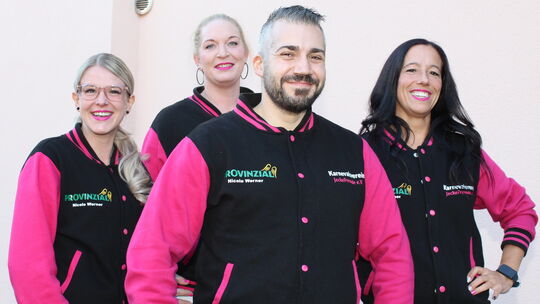 Pink, Schwarz und Weiß sind die Farben des Karnevalsvereins "Jecke Freunde" aus Neustadt. Cindy Agnes Limbach (links) ist die Erste Vorsitzende des Mitte März gegründeten Vereins. Unterstützung erfährt sie unter anderem von der Zweiten Vorsitzenden Barbara Enders (2. von links), dem Gründungsmitglied Janine da Silva Filipe und deren Mann Eddy da Silva Filipe. Daniel Dresen