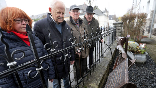 Ursula Dillschnitter (von links), Werner-Johann Kessler, Josef Jachmich und Peter Hünermann setzten sich für das Denkmal ein. Jörg Niebergall